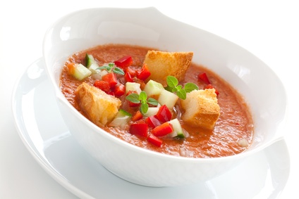 Eine Gazpacho andaluz ist eine kalte andalusische Gemüsesuppe und zählt zu den Nationalsuppen. Sie stammt aus Spanien. Der Begriff Gazpacho wiederum soll aus dem Arabischen stammen und bedeutet soviel wie eingeweichtes Brot.